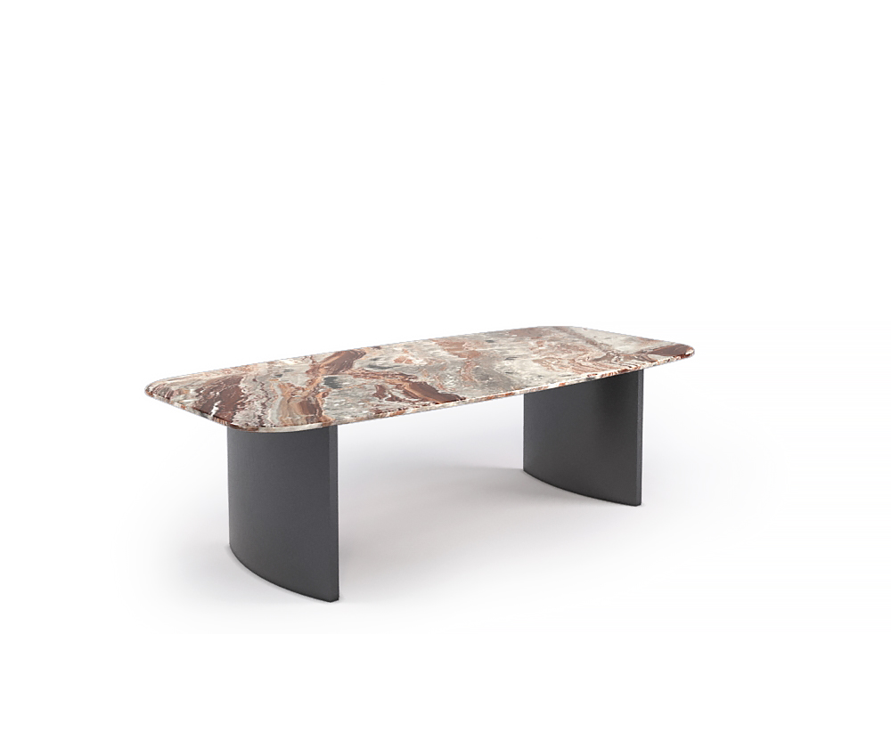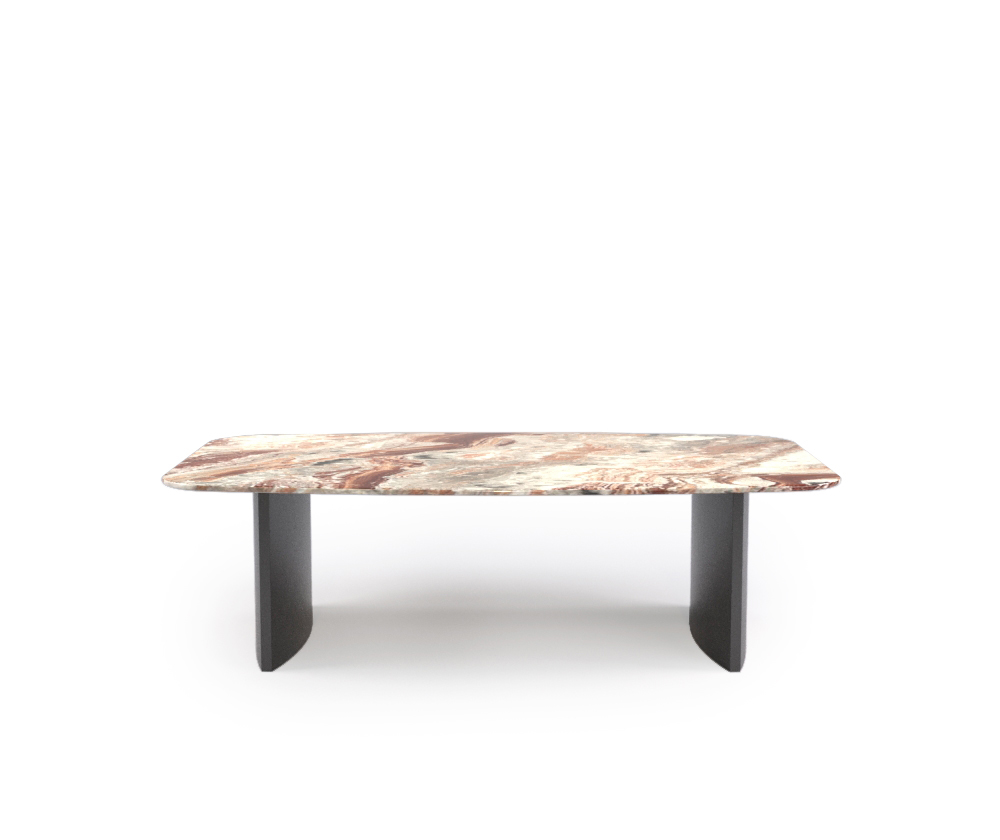 The Elegant table from Marbstel is a magnificent piece of art sized 240 cm. Whether used as a standalone artistic piece or as a luxurious dining table, it's a remarkable addition that captures attention and adds allure to any space, making your home or office radiate with an exceptional artistic touch. This table brings a unique charm wherever it is placed, offering a touch of uniqueness and exceptionality. Its natural Italian marble surface, 240 cm in width and 120 cm in length showcases extraordinary distinctiveness.