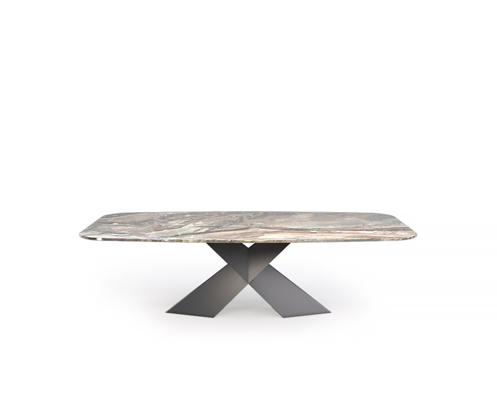 The "Moderna" table by Marbstel, with a size of 260 cm, symbolizes luxury and prominent elegance in the furniture world. It embodies opulence and luxury, making any place it is in shine with a touch of luxury and adding an exceptional style to the decor. It is the ideal choice for social gatherings or dining, offering a spacious surface measuring 300 cm in length and 120 cm in width, comfortably accommodating many guests.