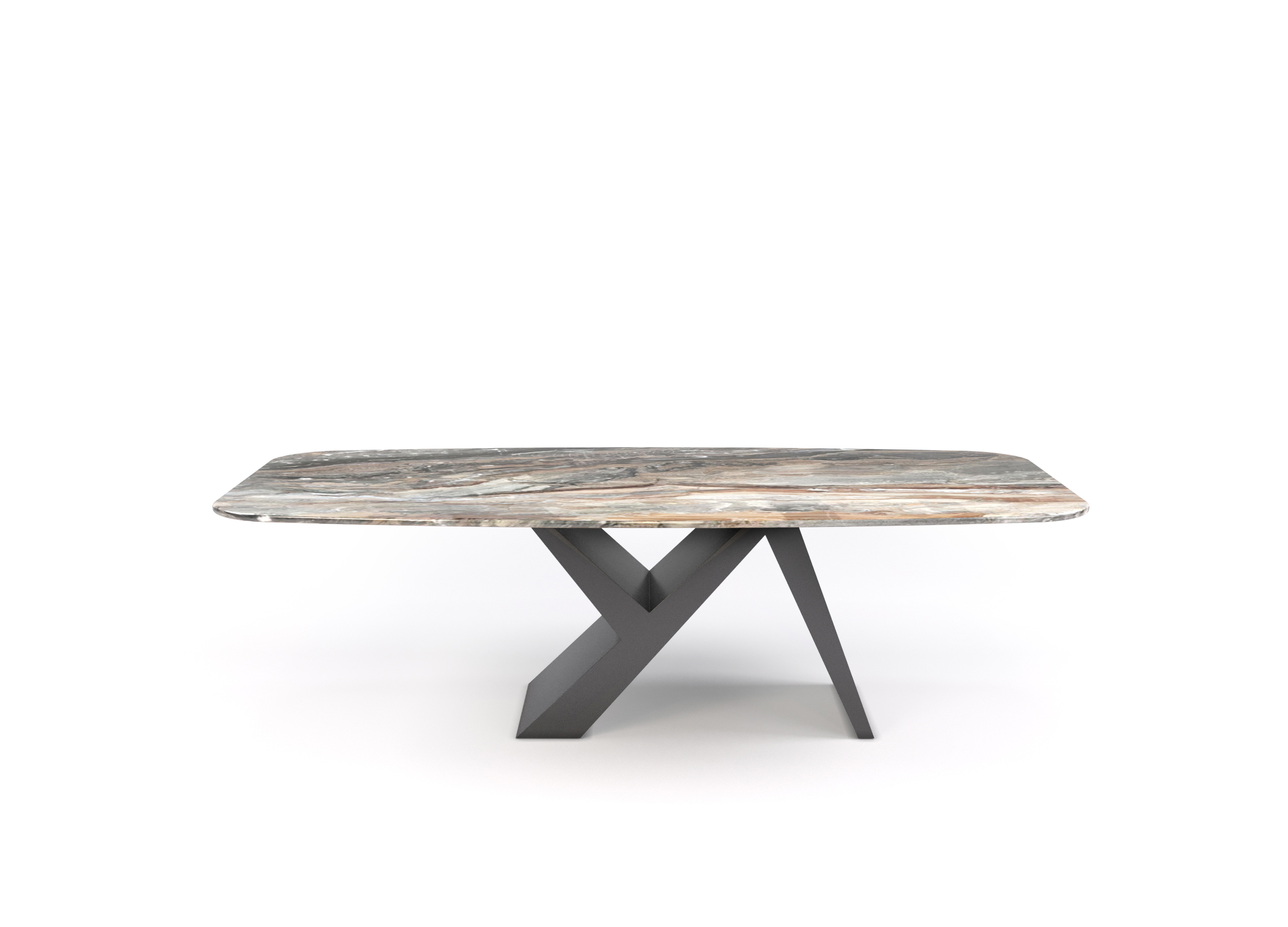 Indulge in sessions filled with classic elegance! Exceptional classic atmospheres in your home! Hill, measuring 240 cm is distinguished by its designs inspired by classical artistic traditions, adding more luxury and awe to your home. This table combines luxury and classic elegance, showcased through natural Italian marble with a soft texture and enchanting colors. It's an ideal table for elegant, classic gatherings in private offices or homes.